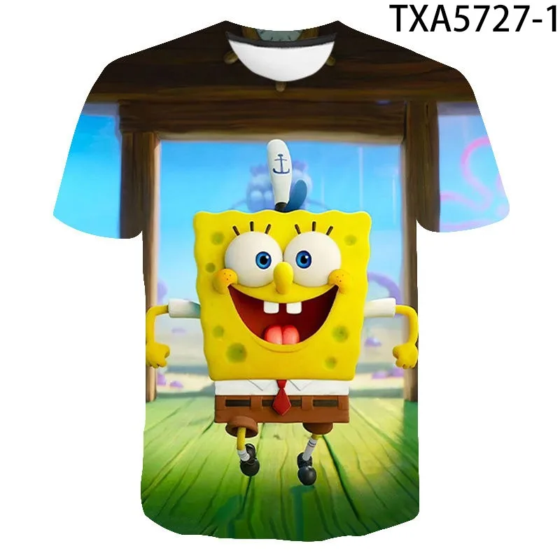 Name: Camiseta de manga corta con cuello redondo para niño y niña, Camiseta con estampado 3D de esponja, de moda, ideal para verano