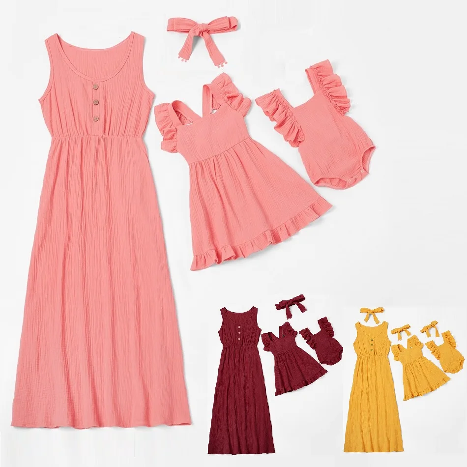 Name: Vestidos a juego para madre e hija, ropa a la moda para madre e hija, sin mangas, de algodón para bebé