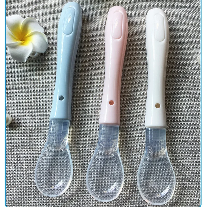 Tasa de descuento Cuchara de silicona para sopa suave para bebé, cuchara saludable de Color caramelo para niño, herramientas de alimentación de bebé, vajilla de Color aleatorio QMrXeNo7nn1