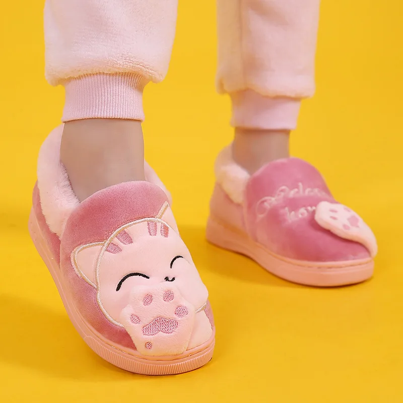 Name: Los niños zapatillas para niños bebé invierno zapatillas Animal gato Zapatillas de felpa para niños muchachos de las niñas calientan calzado para el interior del hogar